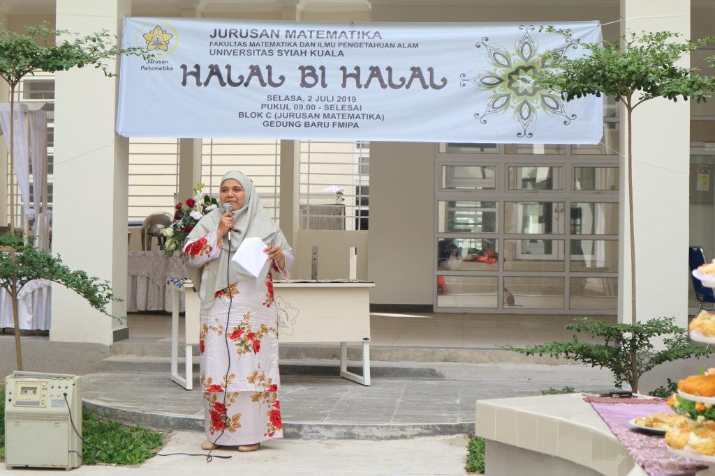 Jurusan Matematika mengadakan acara Halal bi Halal Tahun 2019 (Tahun 1440 Hijriah) pada Selasa (2/7). Acara tahun ini berbeda dengan tahun-tahun sebelumnya karena diadakan di taman tengah Gedung C Fakultas MIPA Universitas Syiah Kuala. Dekorasi ditata sedemikian rupa di bawah koordinasi Dr Siti Rusdiana yang juga merupakan Ketua Jurusan Matematika periode 1999-2003.